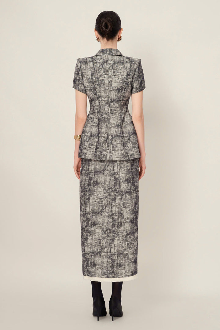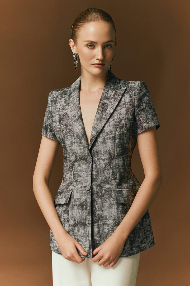 Flora Hourglass Short Sleeved Cotton Jacquard Blazer