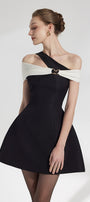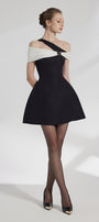 Noir Fit and Flare Diagonal Neck Jacquard Mini Dress