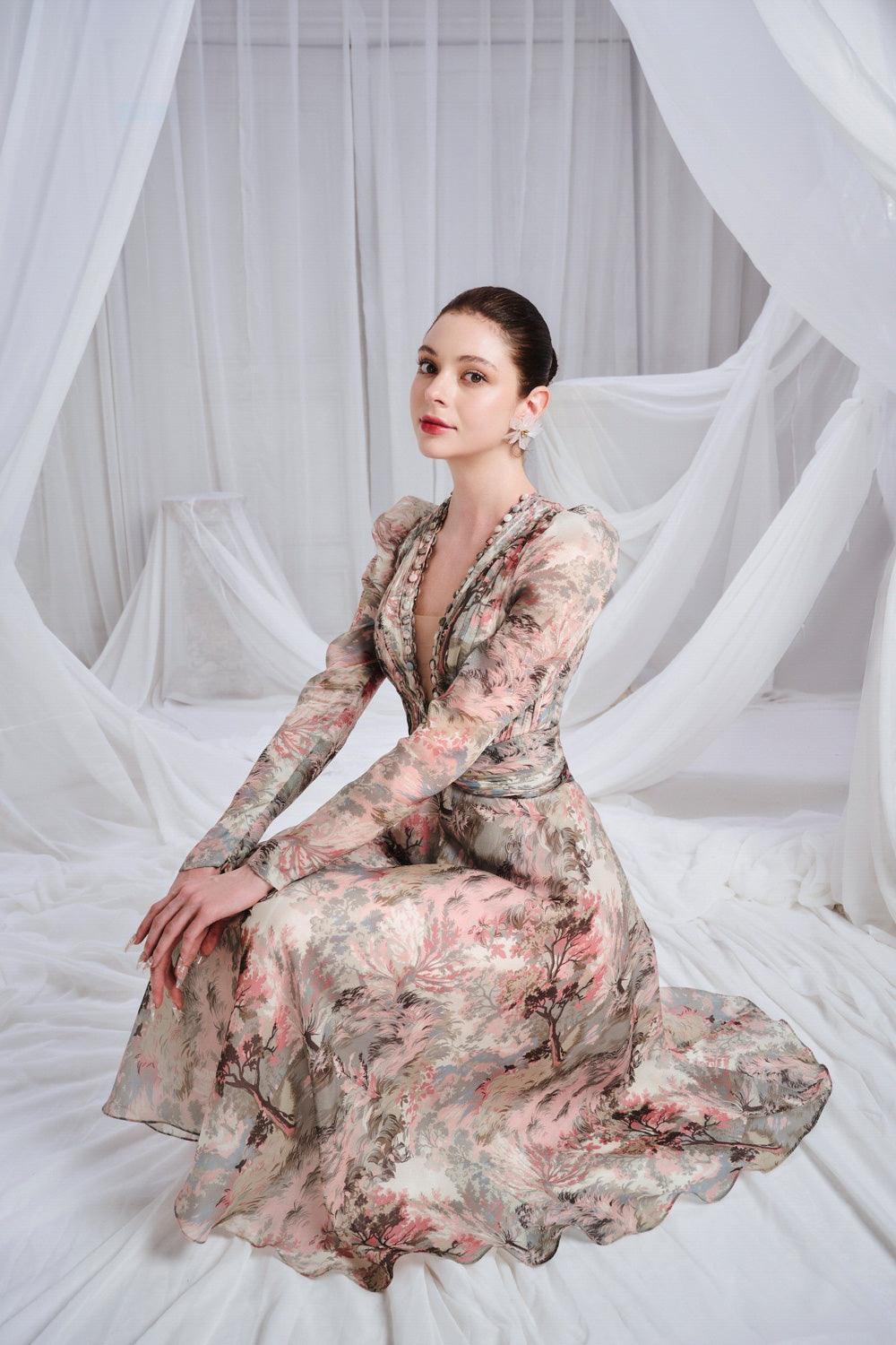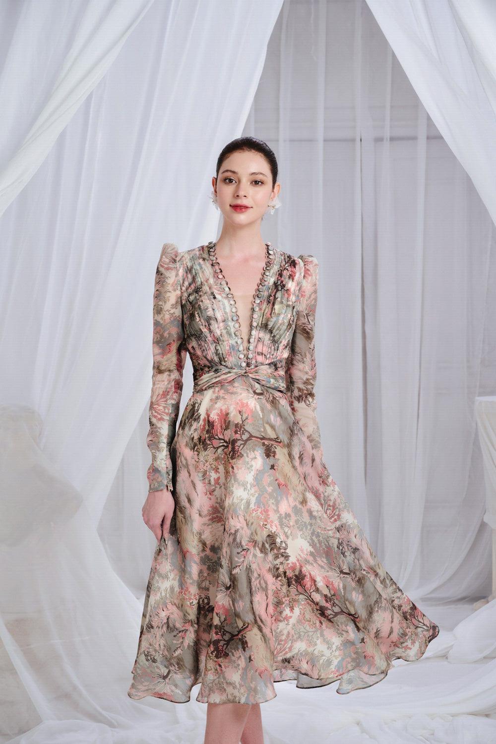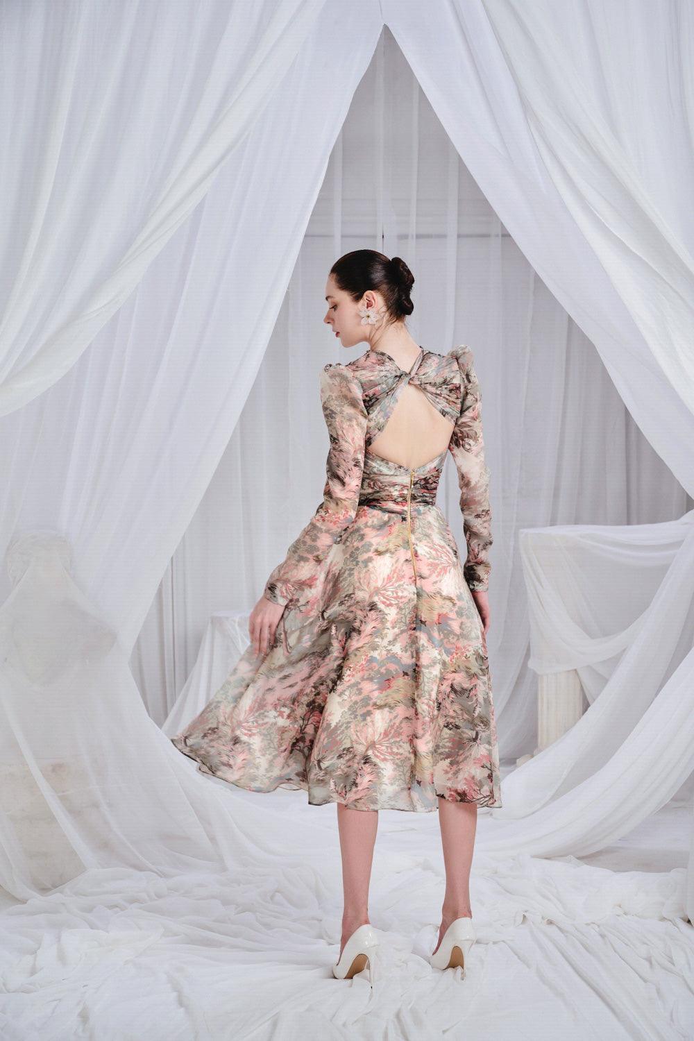 Douceur A-line Pleated Chest Organza Midi Dress