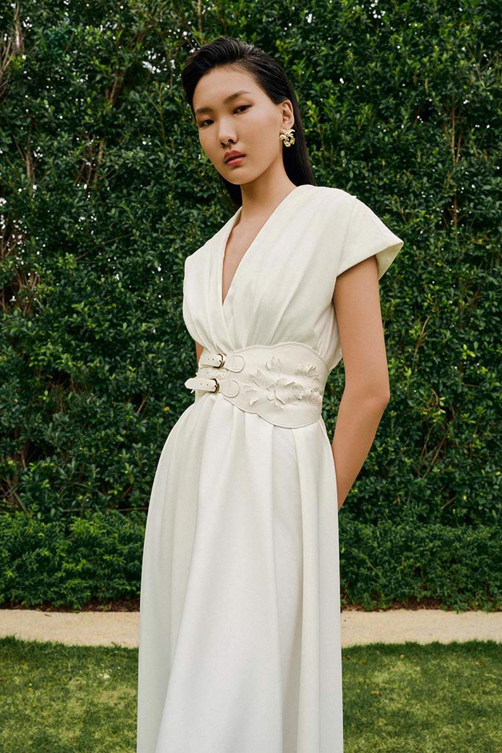 Rose laser cut in leather belt, Double D-ring belt, Surplice design, Wavy hem