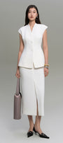 Diane Pencil Front Slit Twill Calf Length Skirt