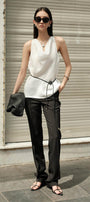 Josette Straight Side Pocket Crepe Floor Length Pants