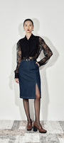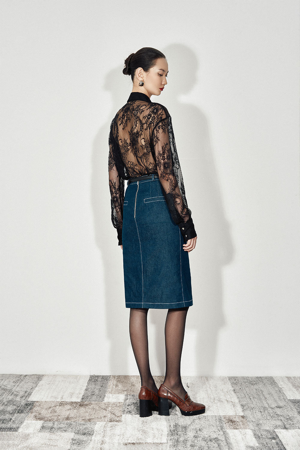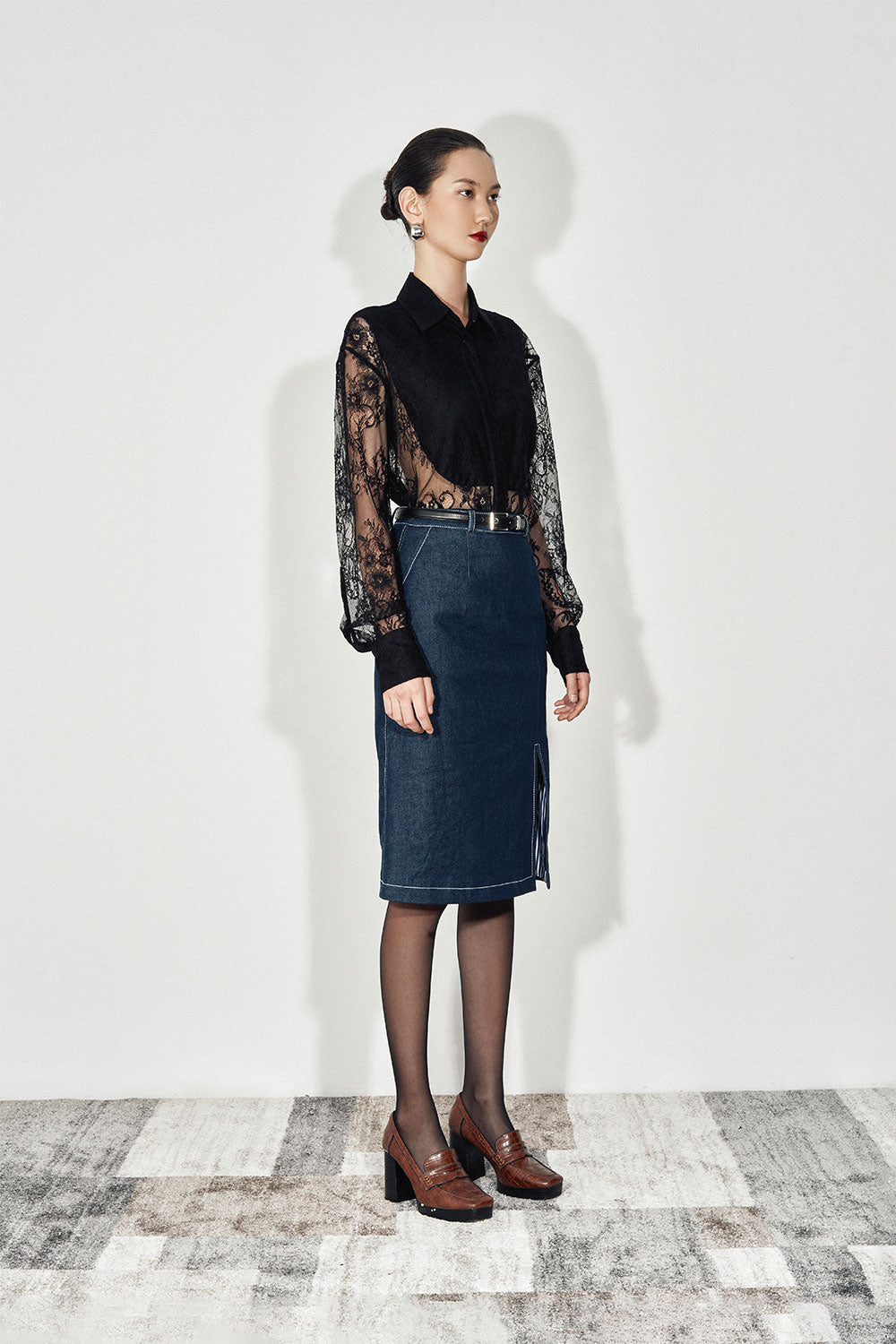 Made with delicate lace fabric, this shirt offers a sheer and sophisticated look. Perfect for any occasion, its straight fit ensures a flattering silhouette. Elevate your wardrobe with this timeless piece.