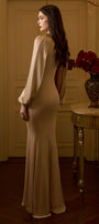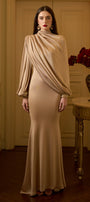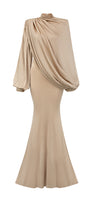 Leona Mermaid Asymmetric Sleeved Jersey Floor Length Dress