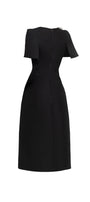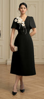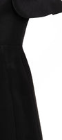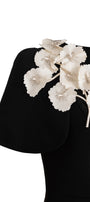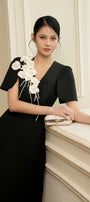 This midi dress features a flattering A-line silhouette and elegant slit sleeves, enhancing both comfort and style. The delicate flower applique on the chest adds a refined, artistic touch, making it an ideal choice for sophisticated occasions. Crafted from smooth taffeta, this midi dress combines structure with graceful movement for a polished, expert look.