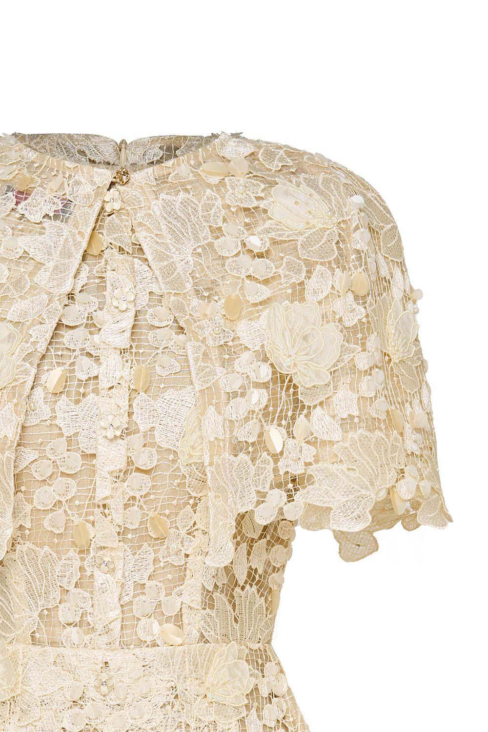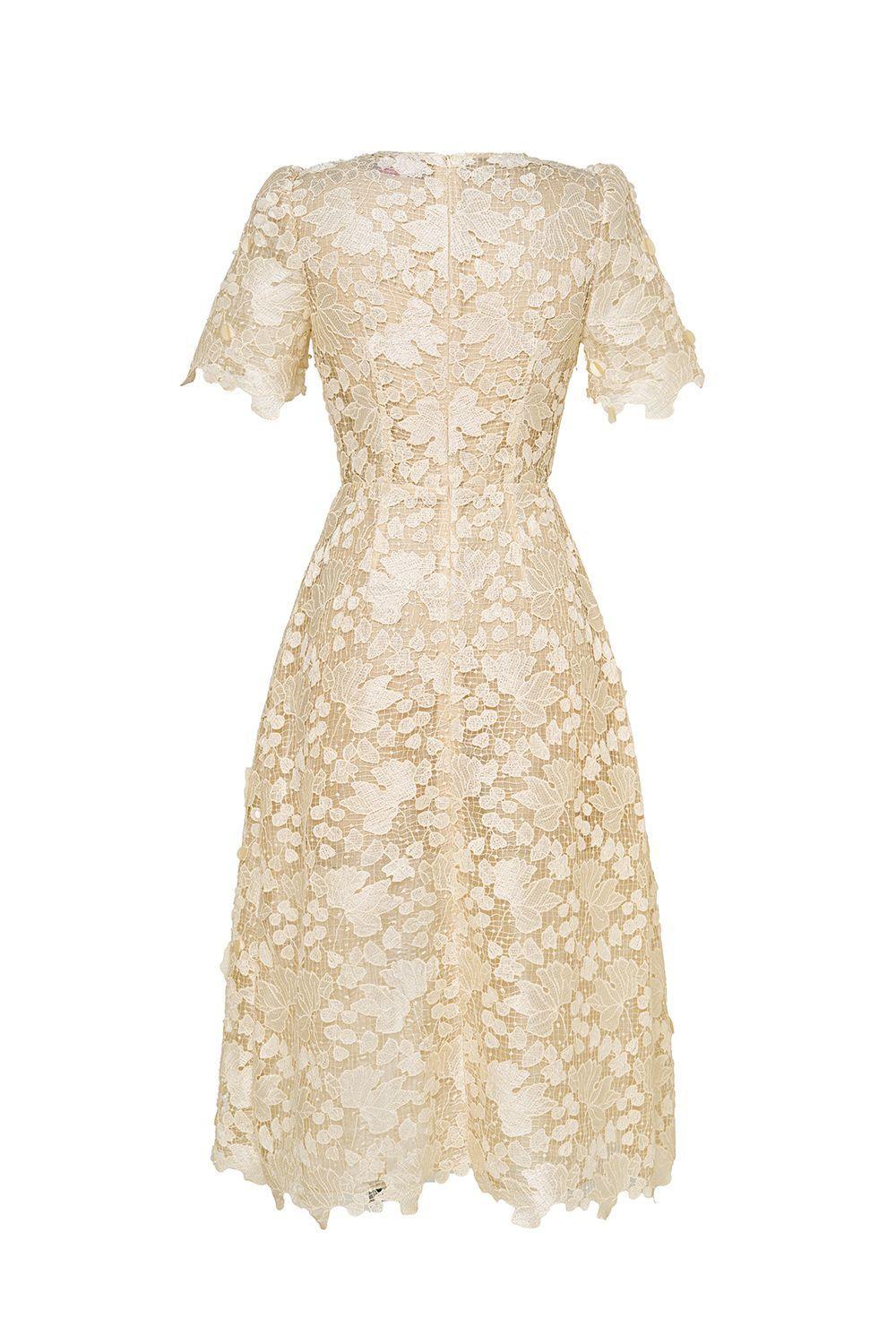 Petal A-line Round Neck Lace Midi Dress