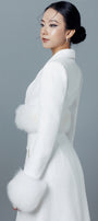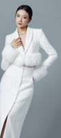 Special Features: Asymmetric collared with shawl and peak lapels, Attached faux fur on the cuffs and hem, Fisheye dart, Single-breasted with matching color, Two piece connected by zipper