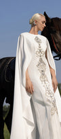Expertly crafted from luxurious taffeta, this sheath maxi dress features a sophisticated round neck, elegant cape sleeves, and exquisite bead embellishments. Ideal for formal events, evening parties, or sophisticated gatherings.