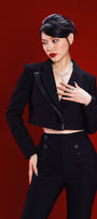 Two faux button line on the waist, Ribbed lines on the front, High waist, Front fly button