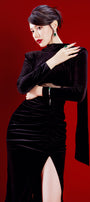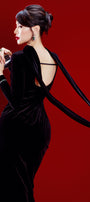 Raggiana Slit Gathered Velvet Ankle Length Dress