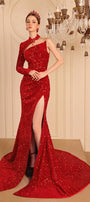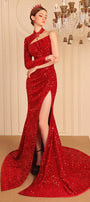 Sparkle Trumpet Side Slit Sequin Extra Long Length Dress