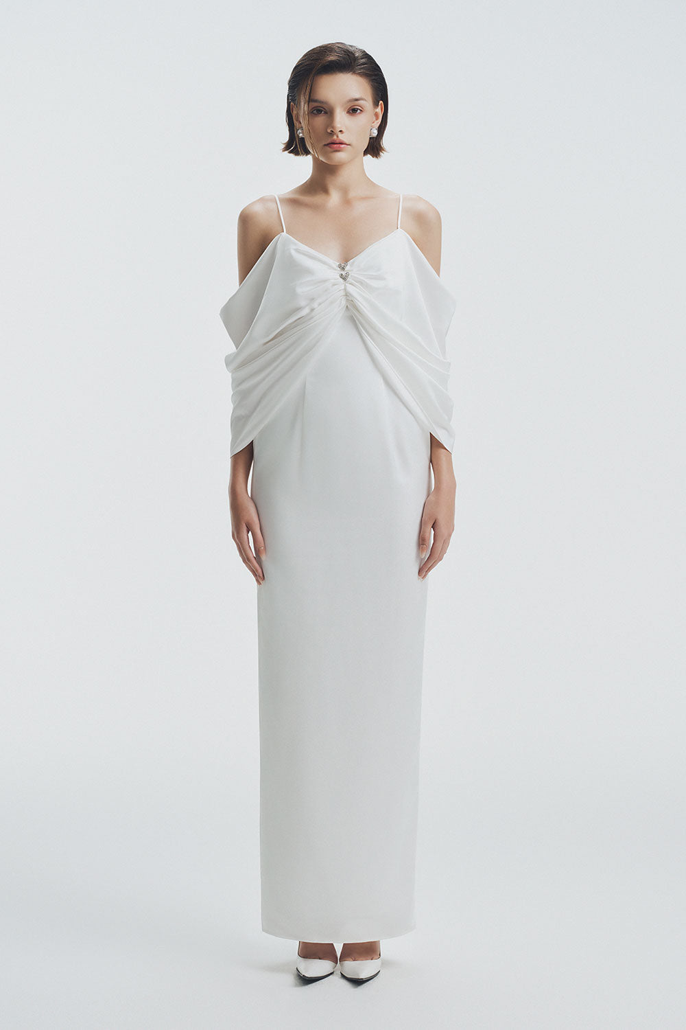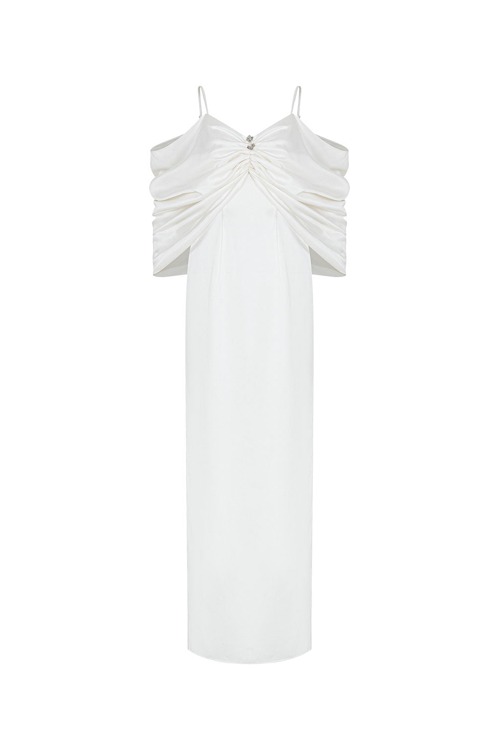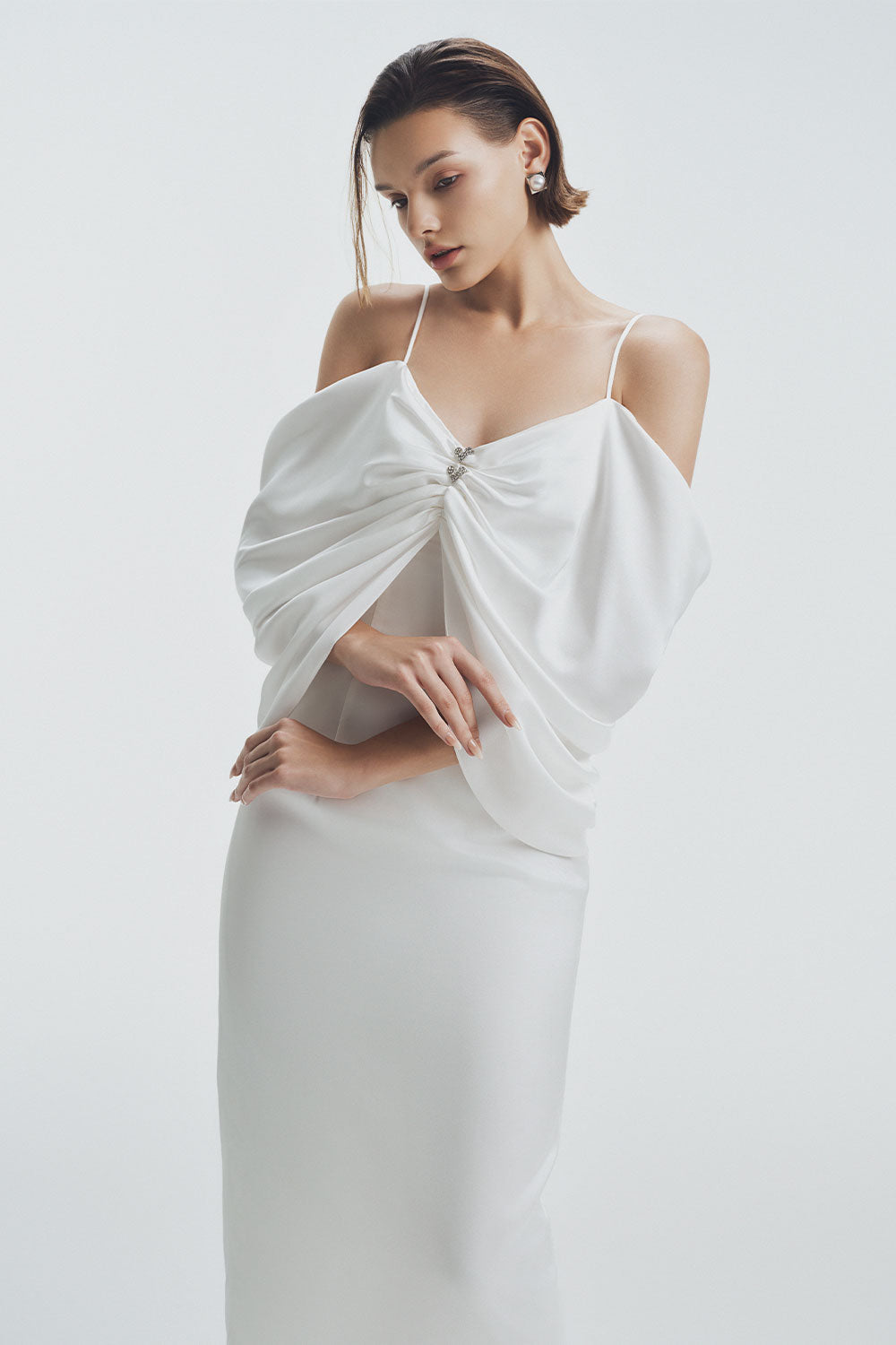 Aurelia Sheath Spaghetti Strap Silk Ankle Length Dress