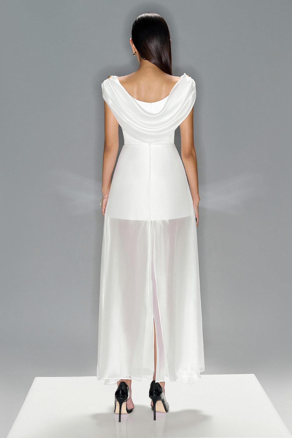Ivory Bodycon Cowl Neck Organza Top