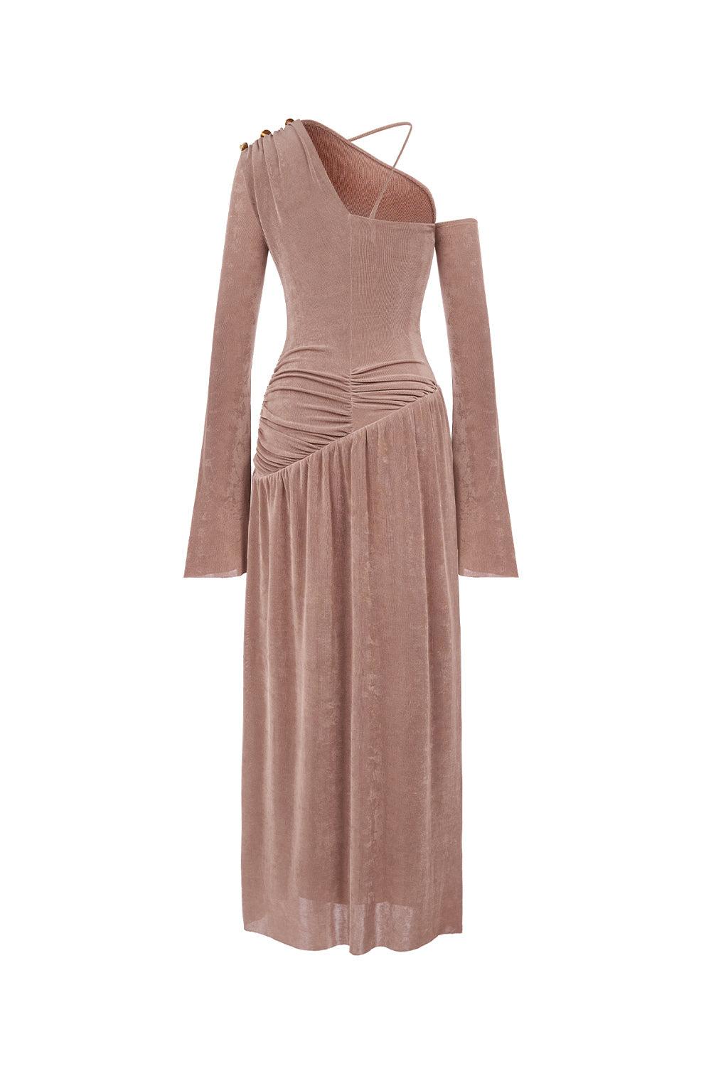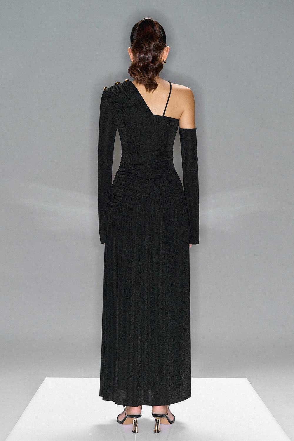 Lauren Gathered Asymmetric Shoulder Spandex Maxi Dress