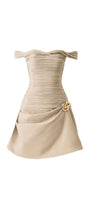Sandie A-line Off-Shoulder Khaki Mini Dress