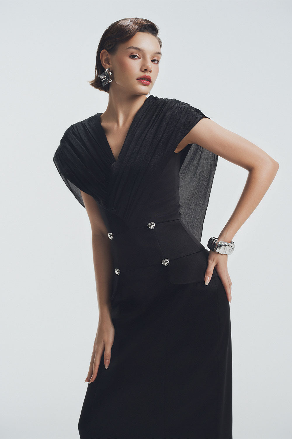 Special Features: Cape shoulder, Silver heart dart line