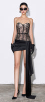 This mini dress features a structured chest cup design combined with delicate mixed lace, offering a sophisticated silhouette that enhances your natural curves. Crafted to provide both support and style, it’s perfect for making a confident statement at any event. The intricate lace detailing adds a touch of elegance, while the bodycon fit ensures a sleek, flattering look. Ideal for those seeking a blend of comfort and refined allure.