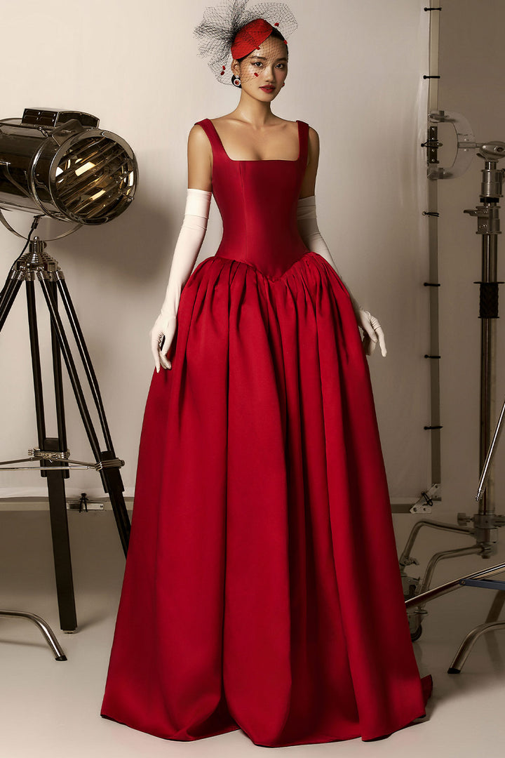 Raelynn Ball Gown Loose Strap Taffeta Maxi Dress
