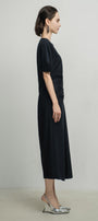 Upgrade your wardrobe with this dress. Its puffy sleeves and calf length design add a touch of sophistication while the tissue fabric provides comfort and breathability. Perfect for any occasion, this dress will make you stand out in style.