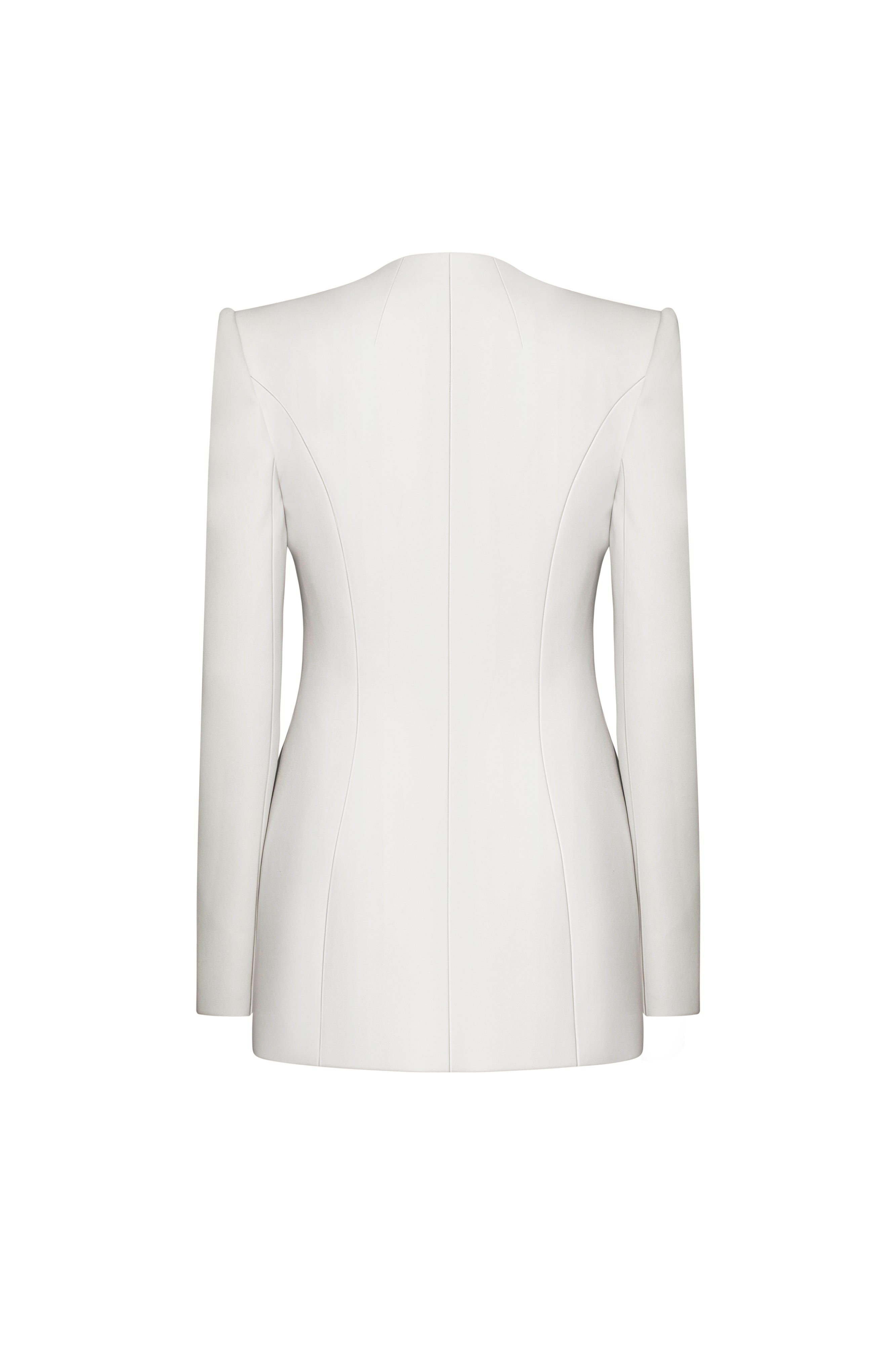 The blazer showcases expert craftsmanship with its clean lines and innovative split sleeve design. Made from refined crepe fabric, this blazer offers a structured yet modern silhouette, perfect for those who appreciate sophisticated tailoring with a contemporary twist. Elevate your wardrobe with this versatile and polished piece.