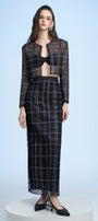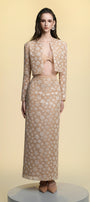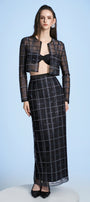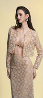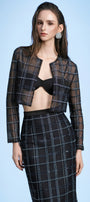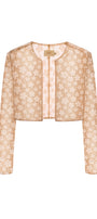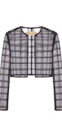 The jacket offers a delicate layering option with its lightweight, sheer tulle fabric. Designed with a cropped silhouette and long sleeves, it adds a refined, modern touch to any ensemble, perfect for enhancing eveningwear or adding subtle elegance to your outfit.