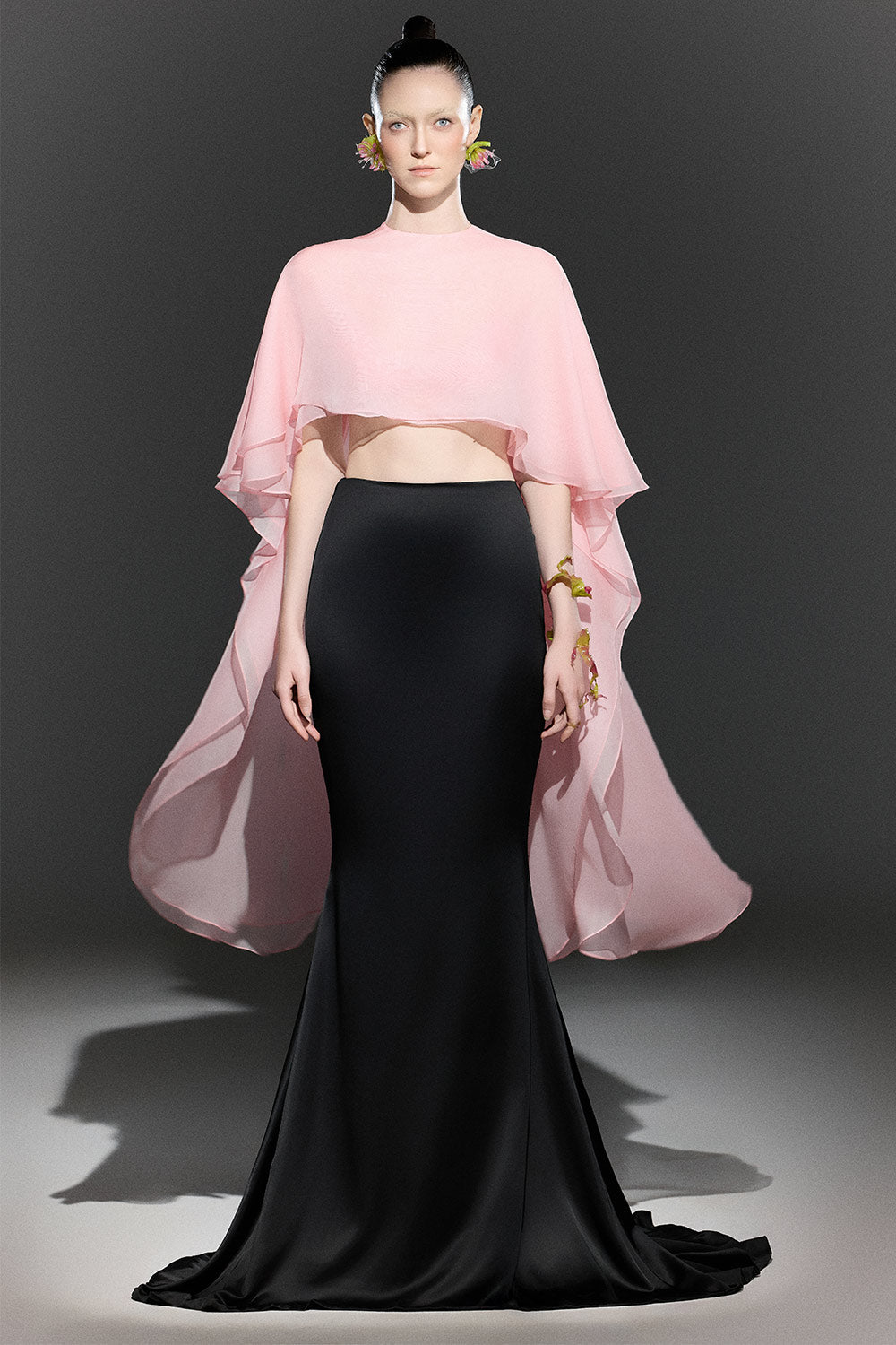 Flowy Trapezoid Cape Sleeved Chiffon Crop Top