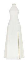 Snowyy Slit Halter Neck Cotton Floor Length Dress