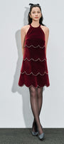 Antonella Trapezoid Halter Neck Velvet Mini Dress