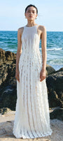 White Seaweed A-line Ruffled Woven Cotton Maxi Dress