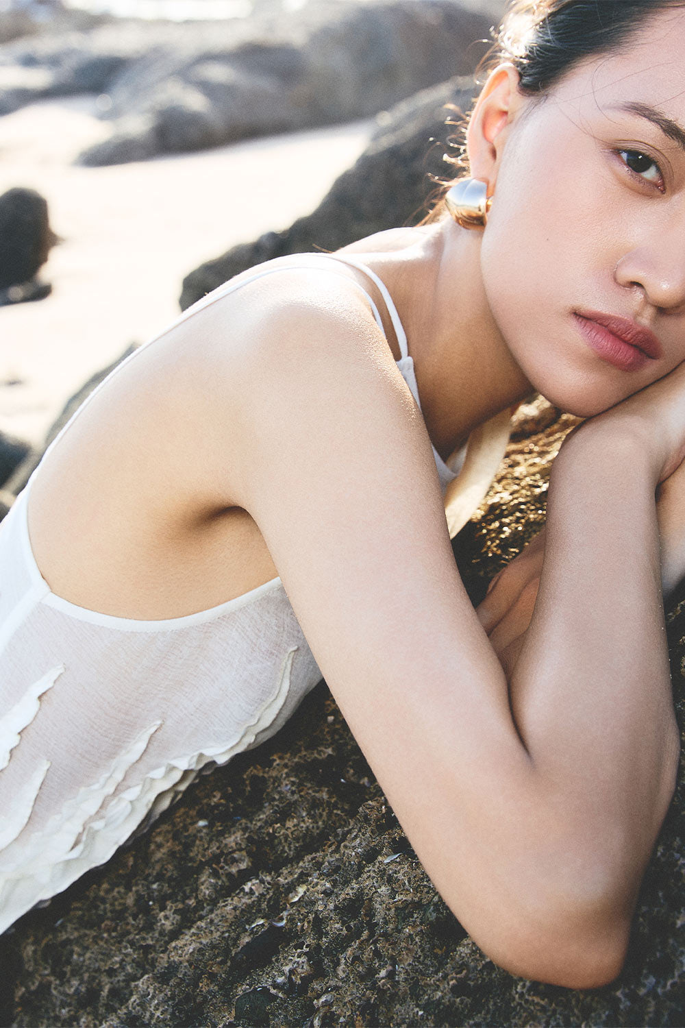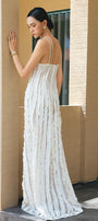 Double spaghetti straps at the back, Ruffle ribbed detail along the dress, See-through design