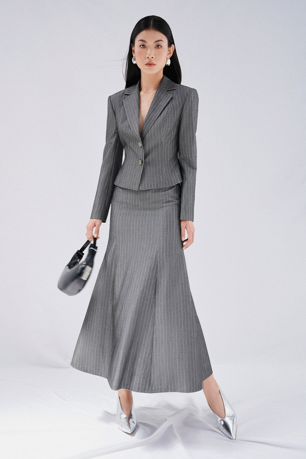 Special Features: Square shoulder, Fitted waist, Slit cuffs with button line, V-neck with notch lapels
