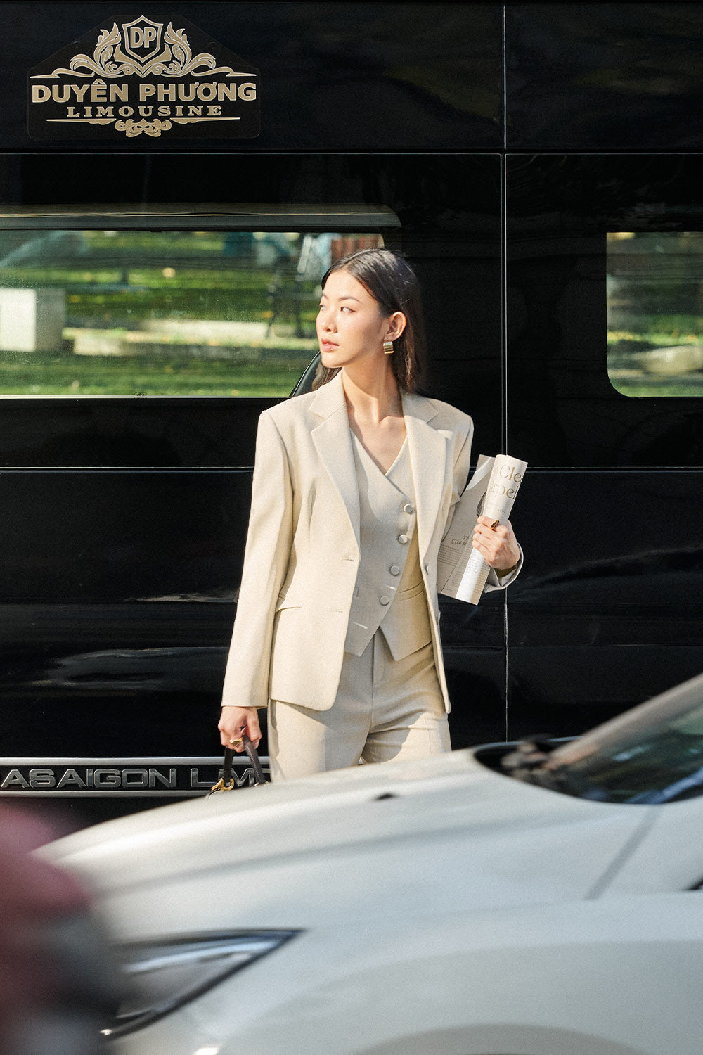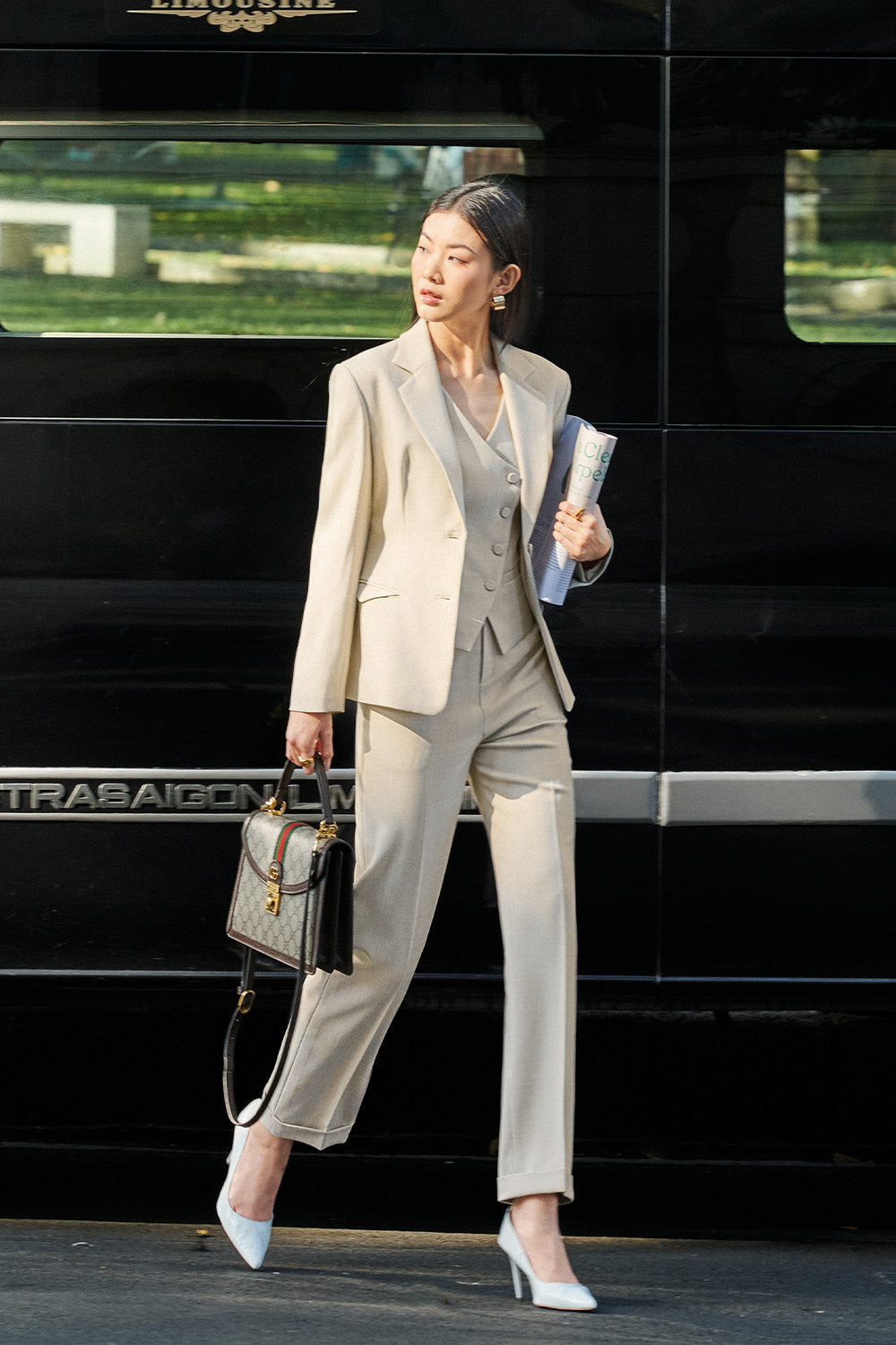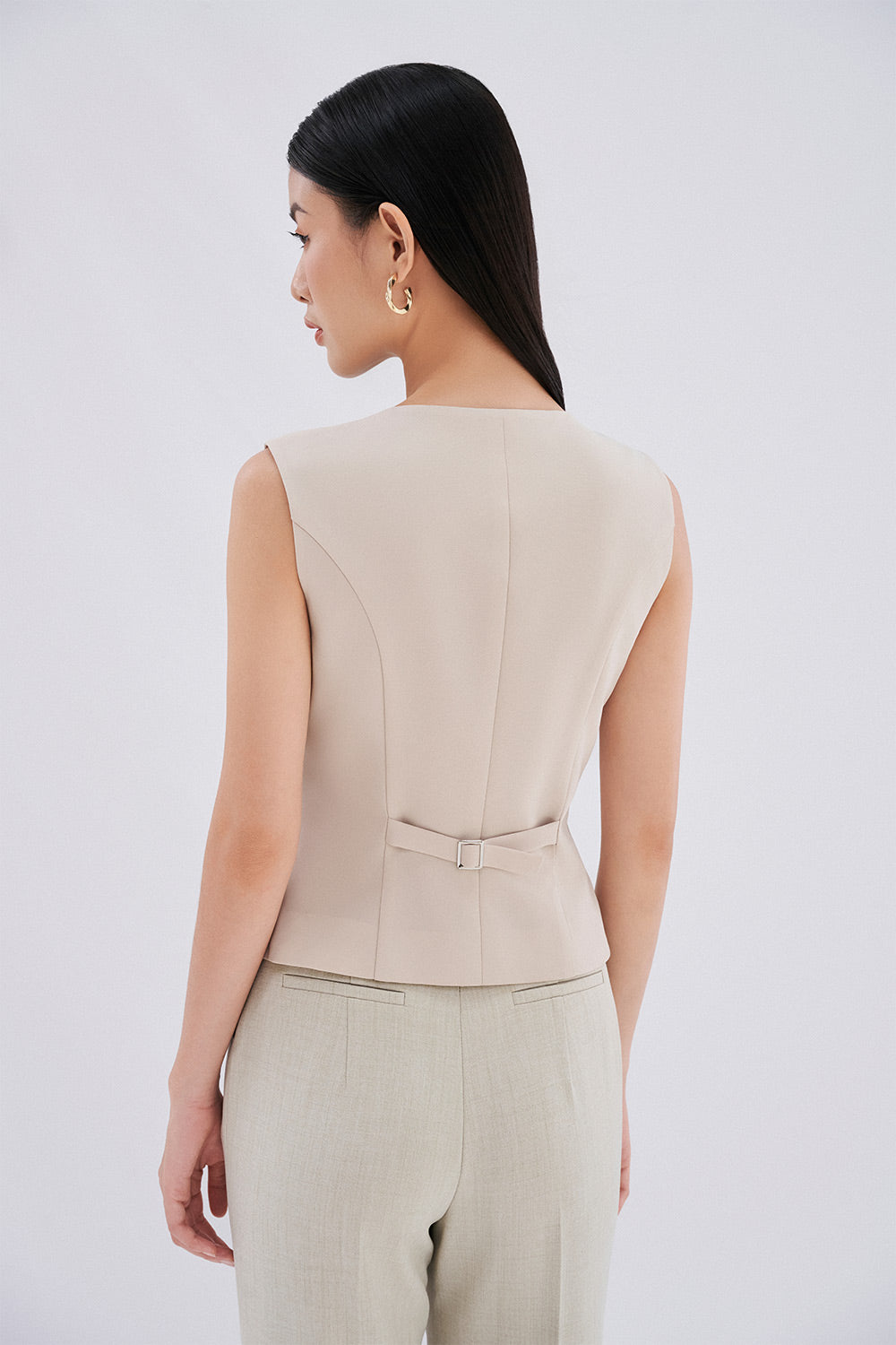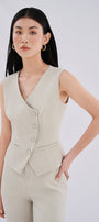 The vest delivers sophisticated structure with contemporary styling. The crossover design creates visual interest while providing a flattering neckline. Crafted from premium twill fabric, this vest offers durability and subtle texture that maintains its shape throughout wear. The bodycon silhouette accentuates curves while providing a tailored fit suitable for professional settings or elevated casual ensembles.