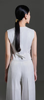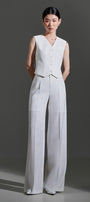 This vest combines architectural precision with luxurious fabrication. The V-neckline creates a flattering elongating effect while the straight silhouette offers a clean, structured profile. Crafted from premium twinkle taffeta, this vest provides subtle luminosity and dimensional texture that elevates professional ensembles. The sophisticated construction ensures proper drape and shape retention, making it an essential layering piece for refined wardrobes.