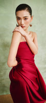 Expertly crafted in luxe taffeta, this asymmetric maxi dress features a straight-across neckline and elegant draping details. Its sophisticated silhouette makes it an impeccable choice for galas, evening events, or formal celebrations.