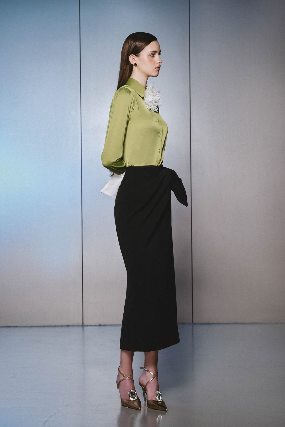 From the perspective of an industry expert, discover optimal comfort and elegance in the skirt. With a straight design and an intriguing twist in the front, this skirt offers a unique blend of style and functionality. Experience the benefits of breathable cotton and a versatile silhouette.