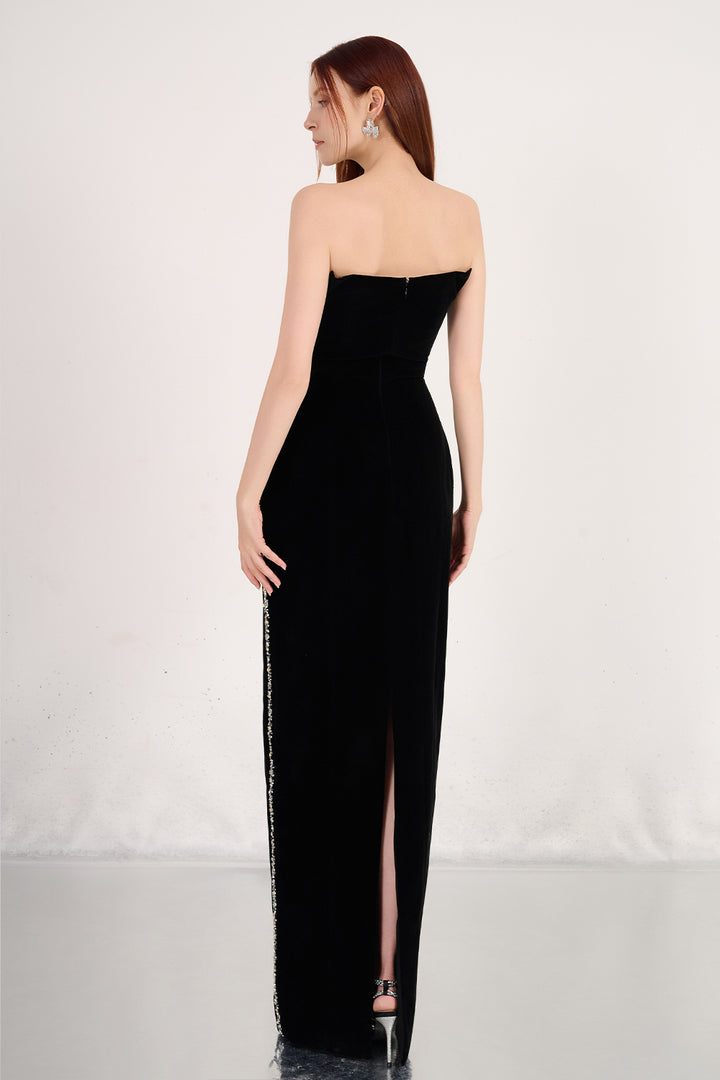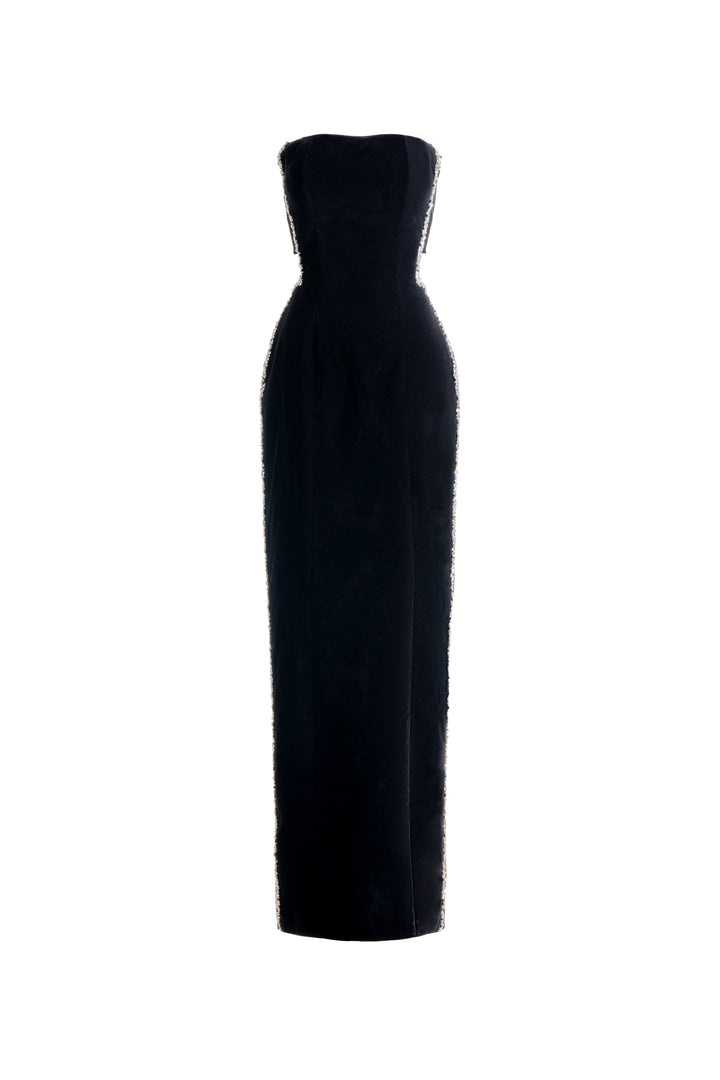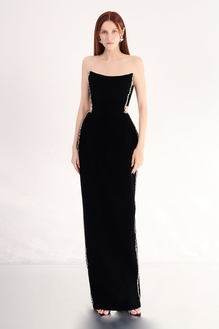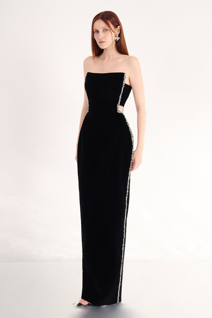 Anais Sheath Straight Across Neck Velvet Maxi Dress