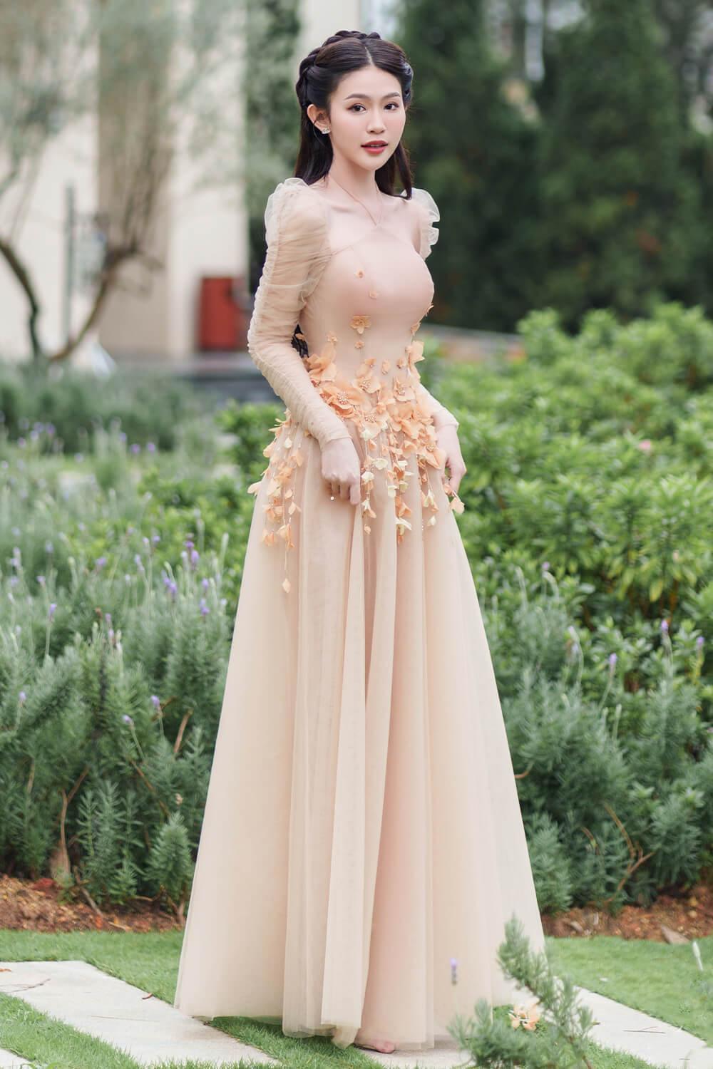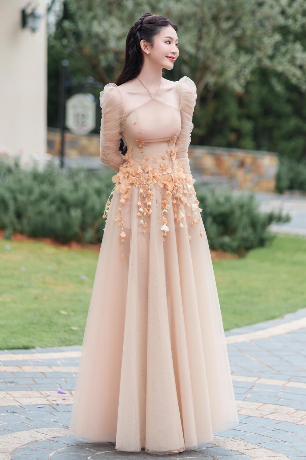 Special Features: Attached 3D flowers and beads on the waist, Draped