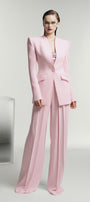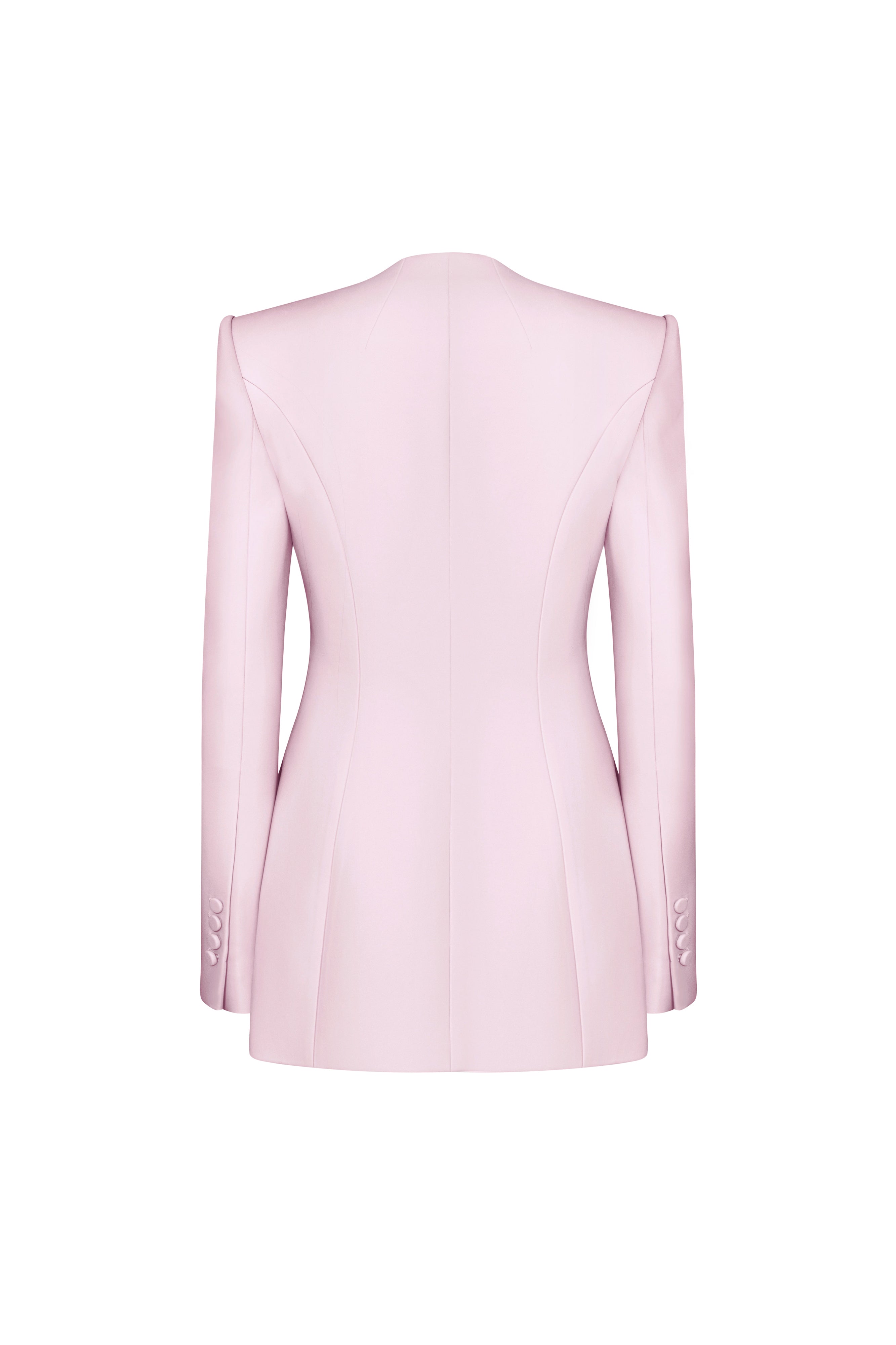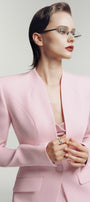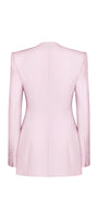 The blazer combines expert tailoring with luxurious silk crepe for a refined, structured silhouette. Its sharp square shoulders and clean lines deliver a commanding yet elegant presence, making it an essential piece for a polished, confident look.