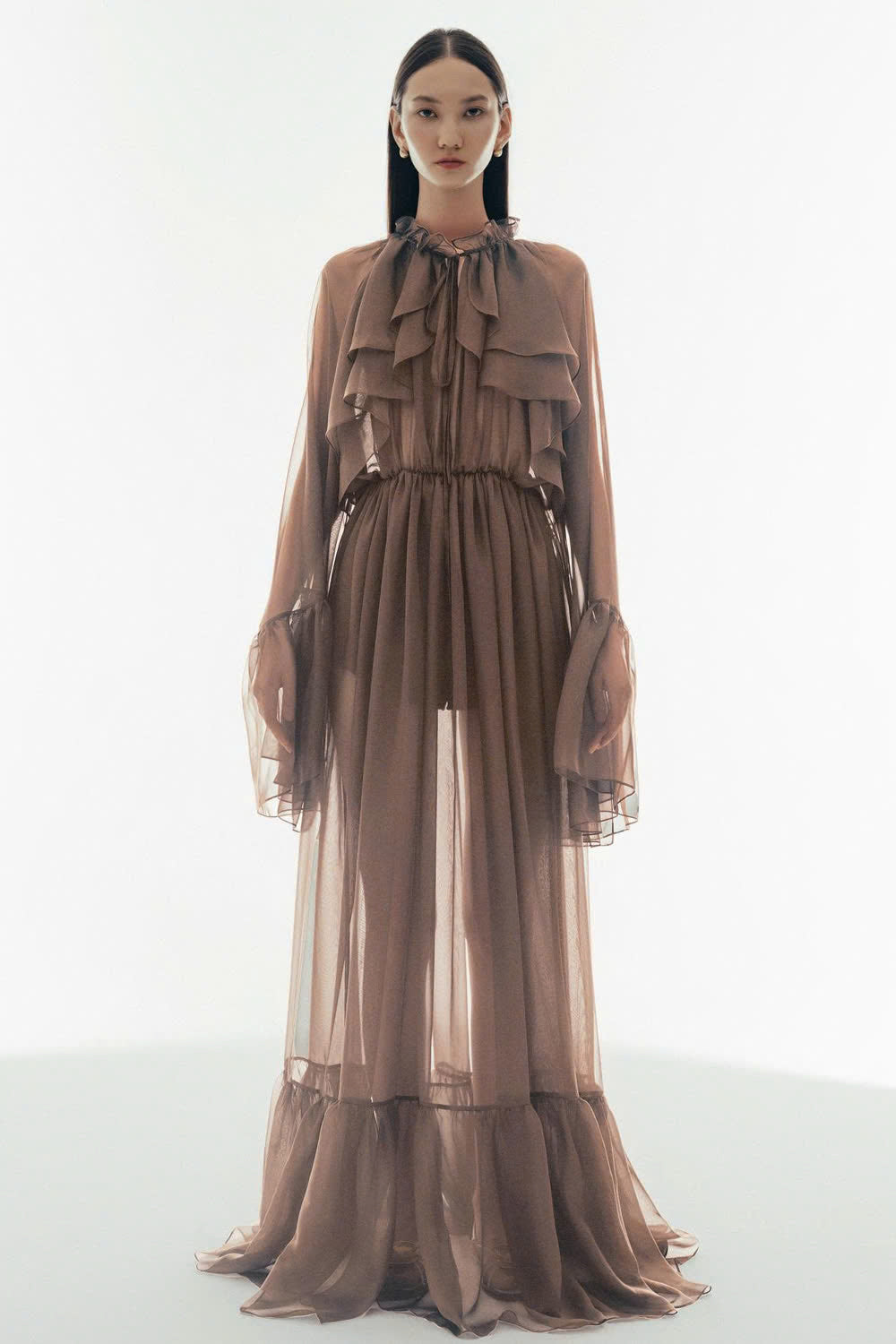 Cecelia Blouson Sheer Chiffon Maxi Dress