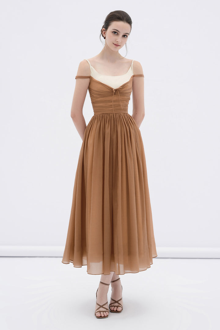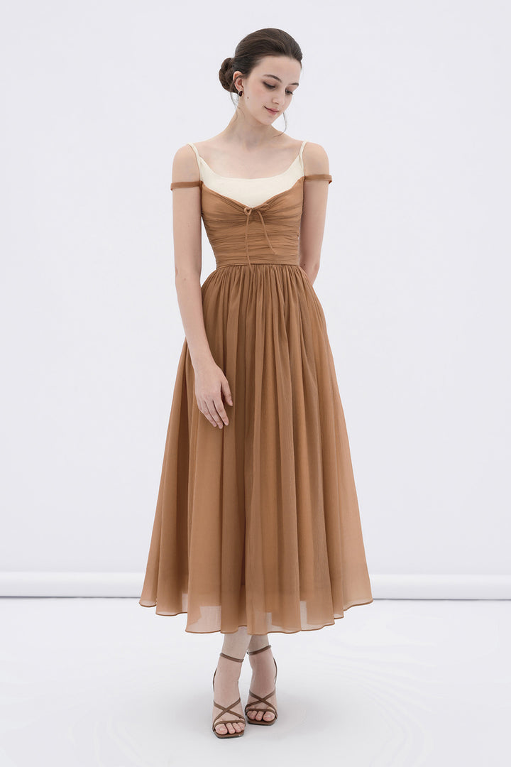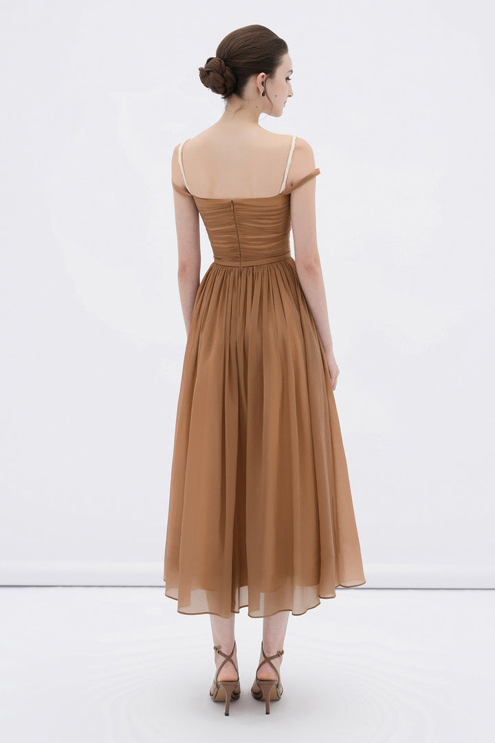 Cornish A-line Cold Shoulder Sleeved Voile Midi Dress