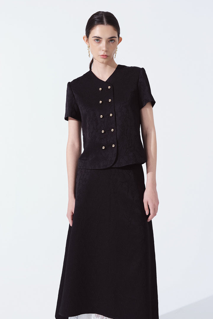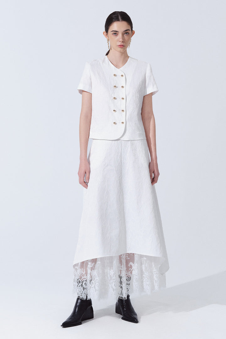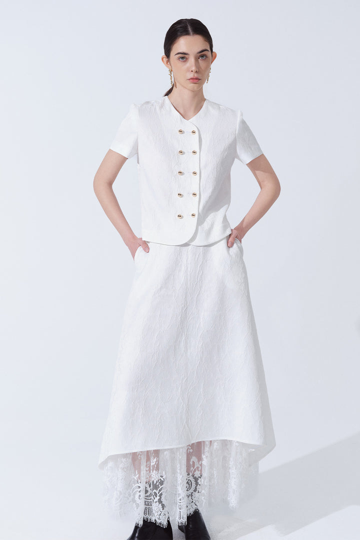 Elena A-line Layered Brocade Maxi Skirt