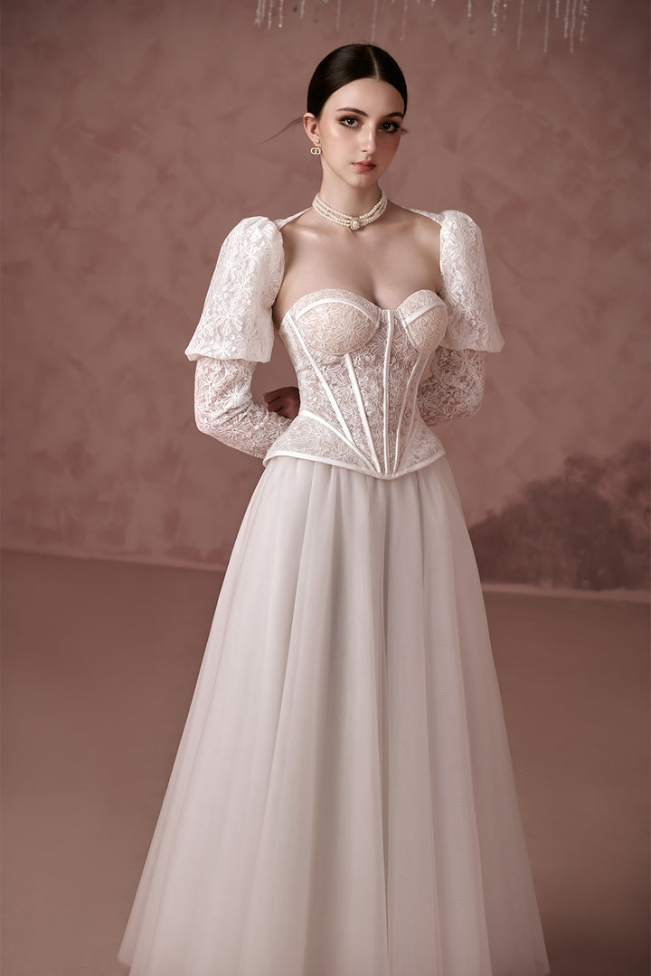 Included component Corset, Skirt, Detachable Sleeves, Not include Veil, Not include Accessories