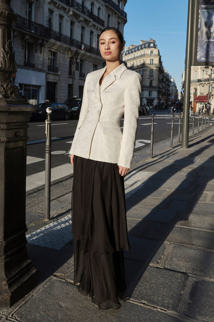 Madame Peplum Double Breasted Taffeta Blazer