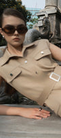 Marja Straight Flap Pocket Khaki Jacket