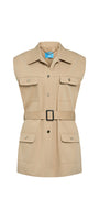 This jacket features a military-inspired design with four functional flap pockets, offering practical storage while maintaining a structured silhouette. Crafted with matching fabric, the belt cinches the waist for a tailored fit, enhancing both style and comfort. Ideal for those seeking a blend of utility and refined detail in outerwear.