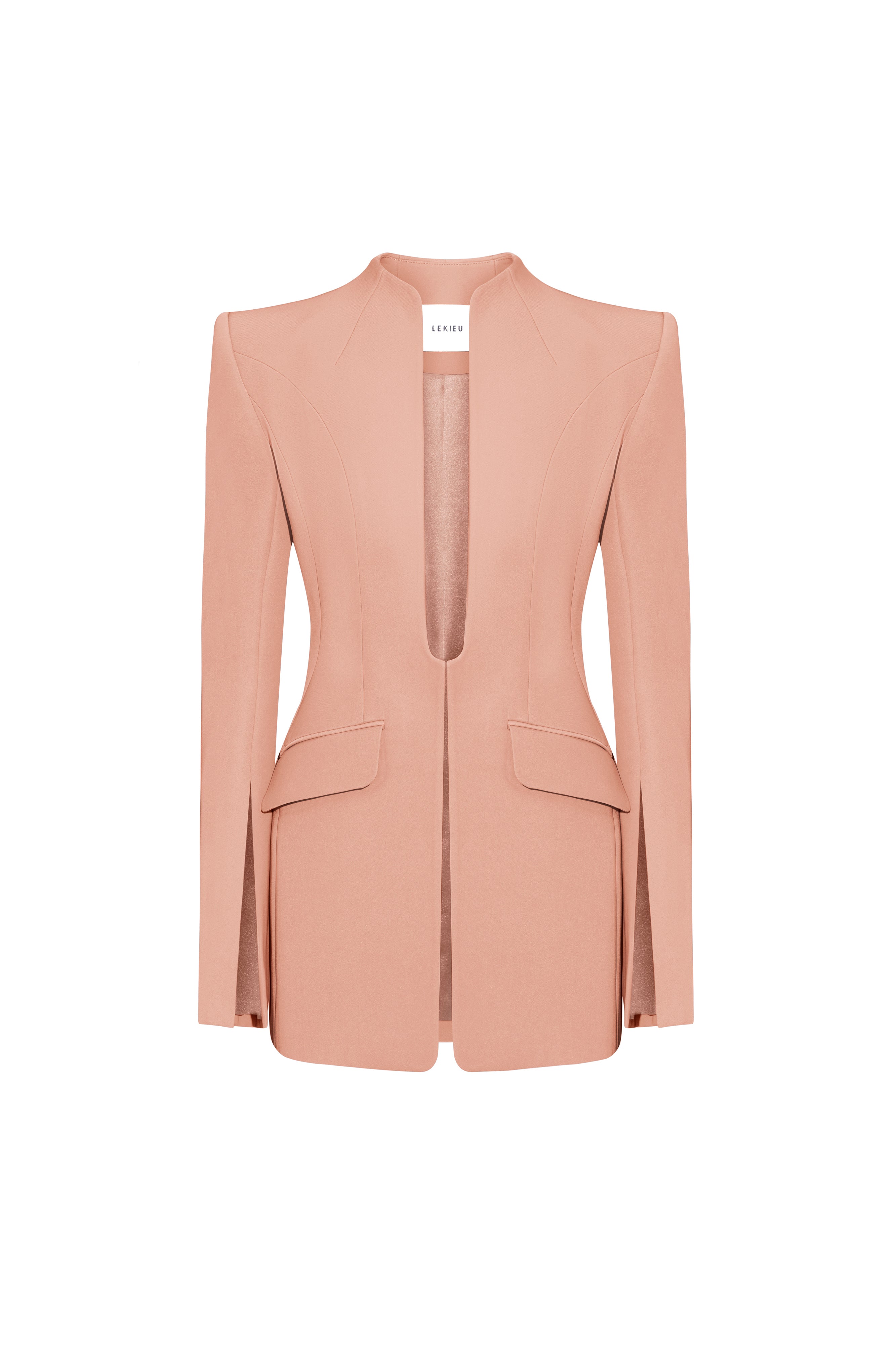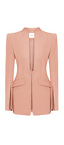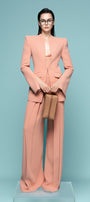 Command a room with the blazer. Its bold, structured shoulders and sleek crepe fabric create a sharp silhouette that demands attention. Perfect for pushing boundaries at work or elevating your evening look, this blazer blends power with refined style effortlessly. Make a fearless statement wherever you go.