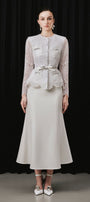 Expertly crafted with premium cotton, this calf-length mermaid skirt offers both sophistication and comfort. The distinctive ribbed texture creates a flattering silhouette that elegantly hugs curves before gracefully flaring at the hem. Perfect for versatile styling from professional settings to evening occasions.