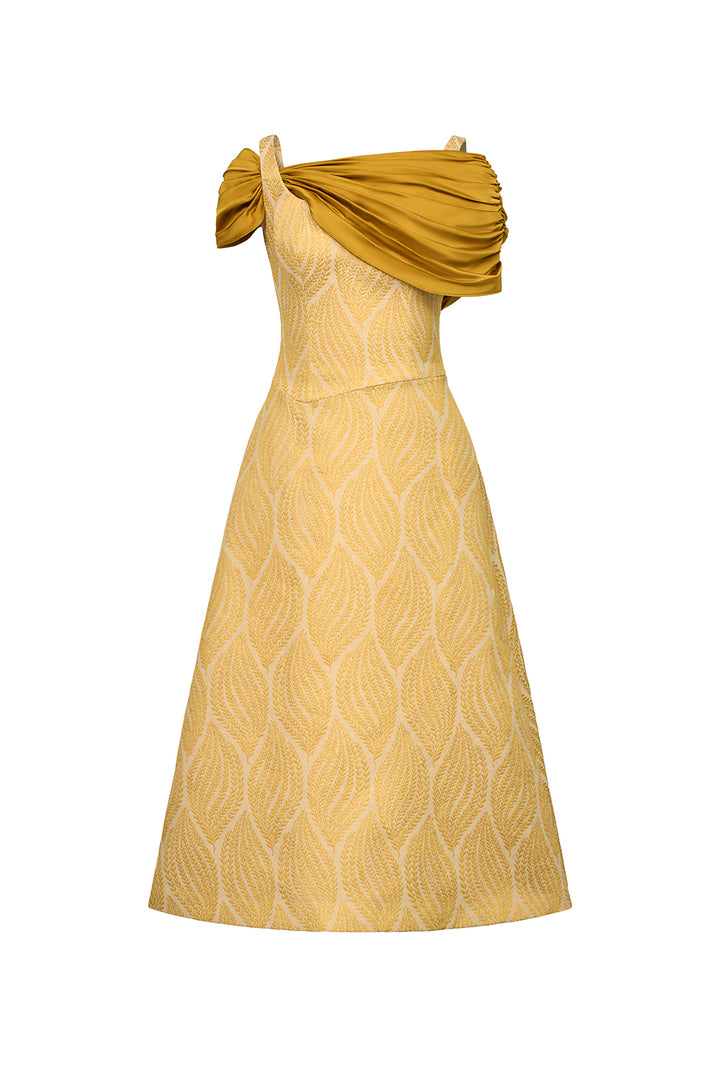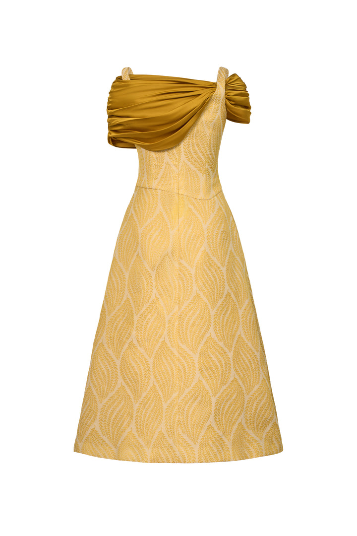 This dress combines expert tailoring with comfort, crafted from soft cotton jersey for breathability and ease of movement. Its calf-length silhouette flatters a variety of body types, while the cold shoulder design adds a contemporary edge. Ideal for both casual and semi-formal occasions, this dress offers a refined balance of style and comfort.