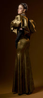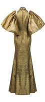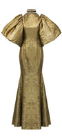 Rose Trumpet Bubble Sleeved Silk Floor Length Dress
