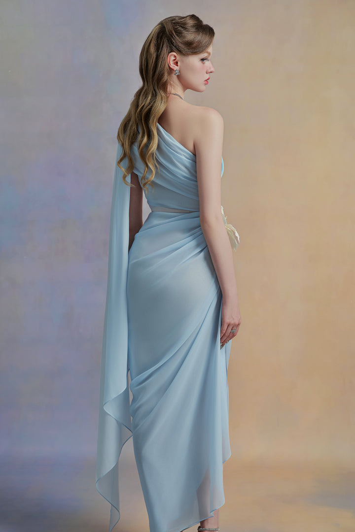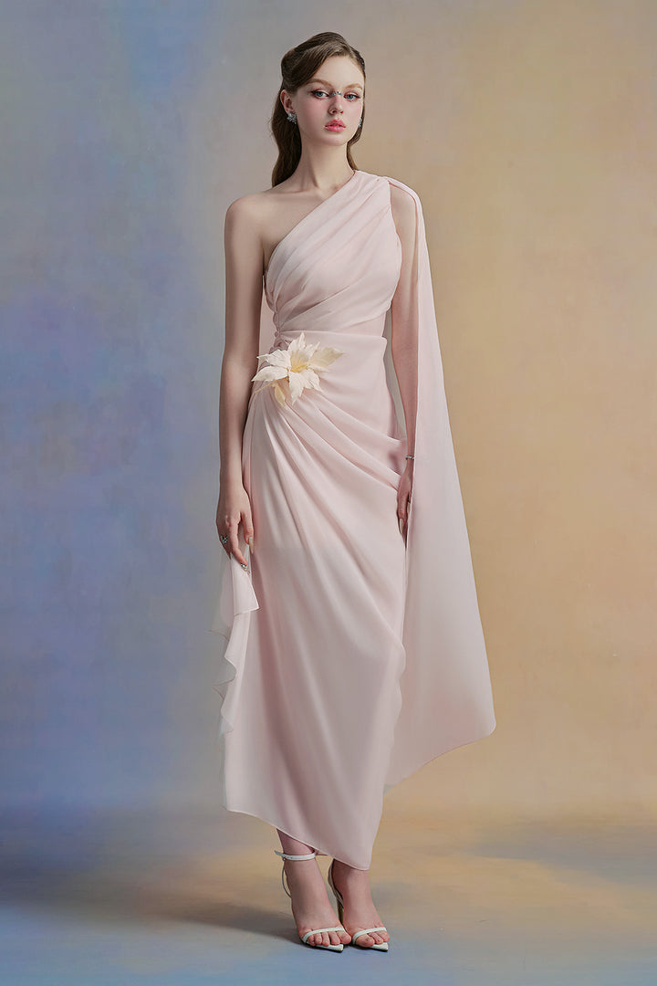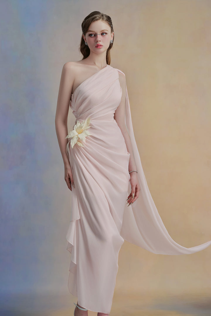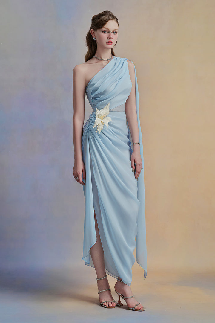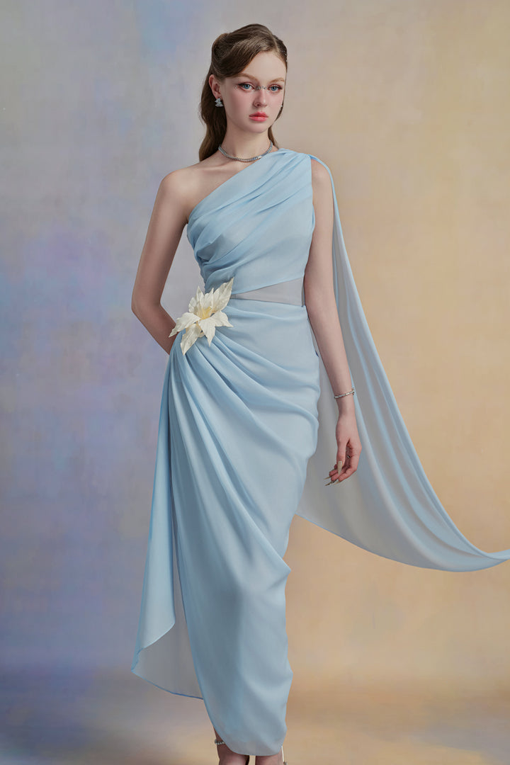 Selithe Sheath One Shoulder Silk Organza Midi Dress